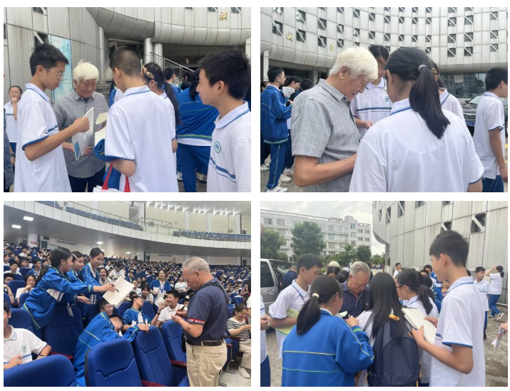 此次宣讲活动充分发挥了“五老”队伍在青少年思想道德建设中的示范引领作用,深植了同学们心中对家国的情怀与对家乡的认同。通过讲堂活动,“五老”群体的经验与智慧在校园中得到了充分展示与传承。活动结束后,主持人文瑞和主讲人何波教授被同学们团团围住,大家手持笔记本争相邀请他们签名留念,现场充满了热情的互动氛围。